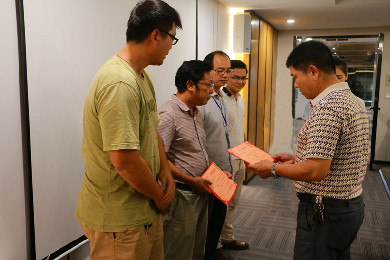 集團(tuán)公司副總經(jīng)理蒙福東給獲獎(jiǎng)員工頒獎(jiǎng)