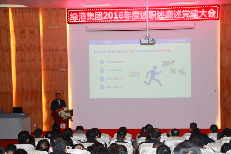 2017年1月14日,綠港集團召開2016年度述職述廉述黨建工作會議,集團全體領(lǐng)導(dǎo)班子、集團總部全體員工及子公司中層干部、職工代表共150余人參加了大會,經(jīng)開區(qū)紀(jì)工委派駐國有公司紀(jì)檢組組長李云岳,黨群工作局組織科科長向國澤出席會議。