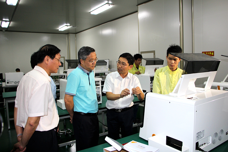 周紅波市長(中)視察位于綠港國際中心B4棟的廣西華銀醫(yī)學(xué)檢驗(yàn)所,與企業(yè)負(fù)責(zé)人親切交談