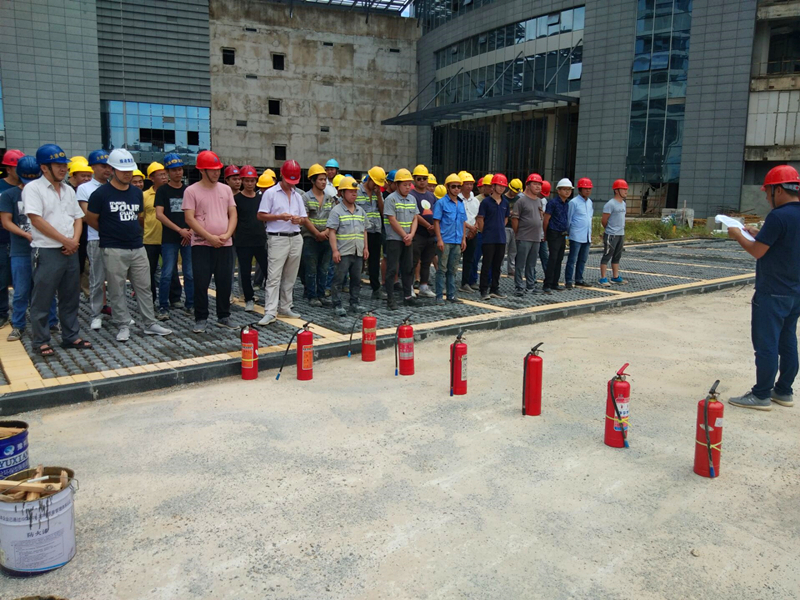 綠港國際中心項目:積極展開安全生產工作布置,并進行了安全教育及消防滅火演練。演練現(xiàn)場,專業(yè)人員詳細講解安全知識,工人們輪流試用消防器材,直至全體人員掌握了消防器材的基本使用方法,以及了解發(fā)生火災事故如何撲救和如何正確逃生技巧。