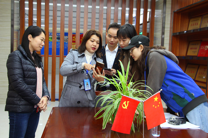 《交流學“習”心得》(集團辦公室 覃尤美)圖片說明:南寧電臺記者采訪綠港集團“學習強國”情況